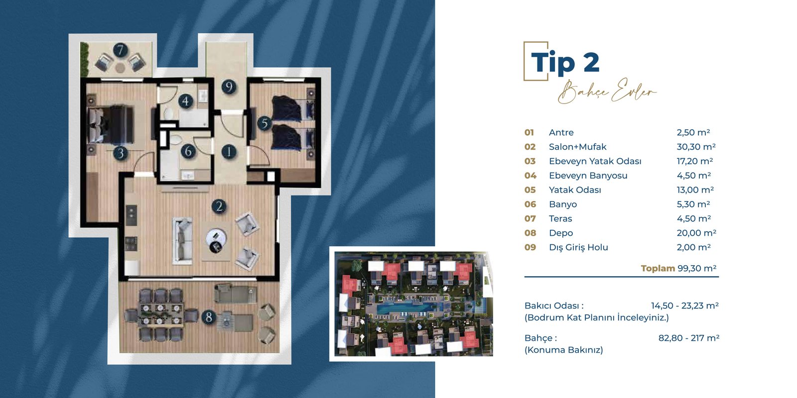 Hayallerinizin ötesinde mottosuyla tasarlanan proje, pırıl pırıl denizin yanı başında konumu, kendine özel iskelesi, tüm dairelere özel bakıcı odası, kapalı otopark ve fitness salonu gibi özellikleriyle bölgenin en özel projesi olarak dikkat çekiyor.